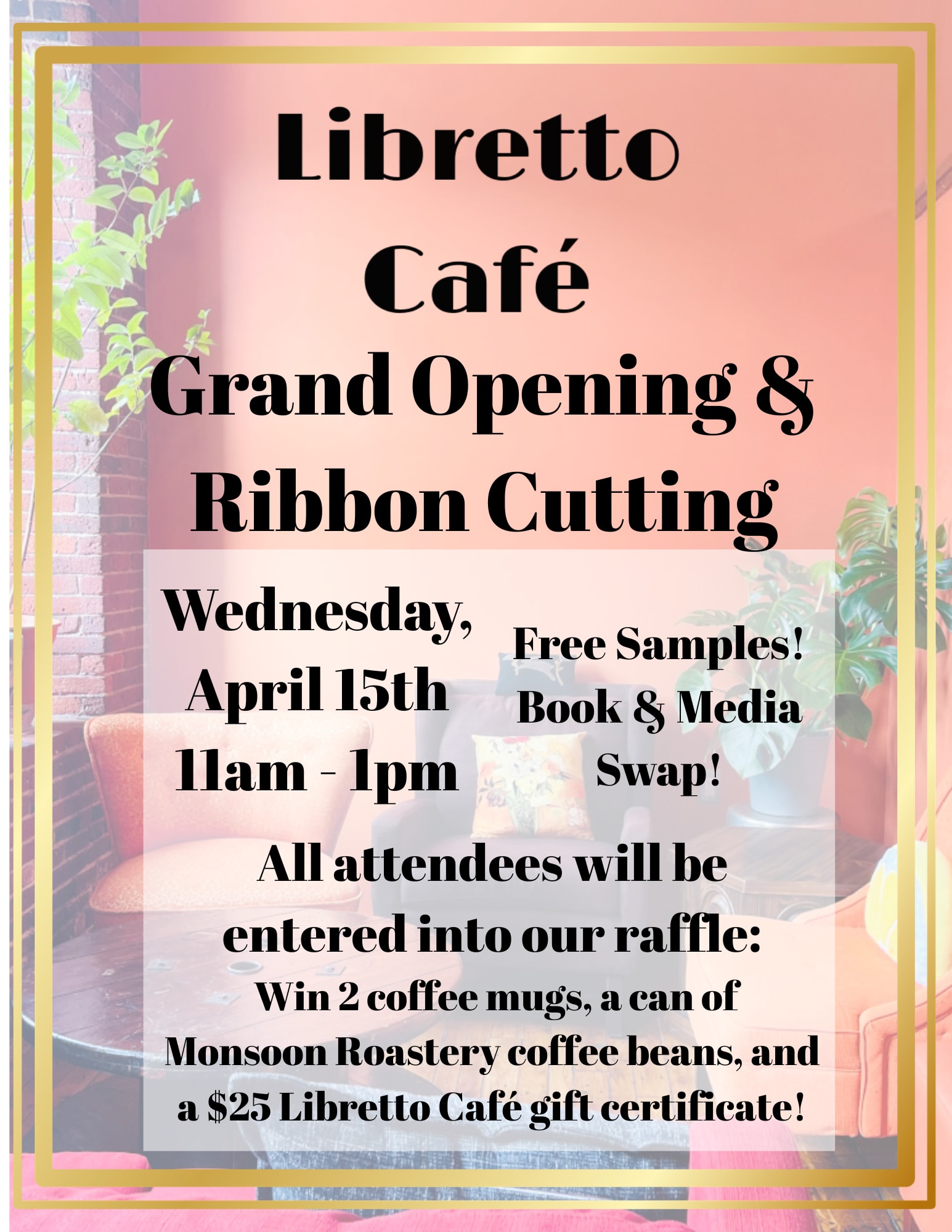 Libretto Café announces Official Grand Opening celebration April 15th 11AM - 1PM, with a Ribbon Cutting at 11 AM
