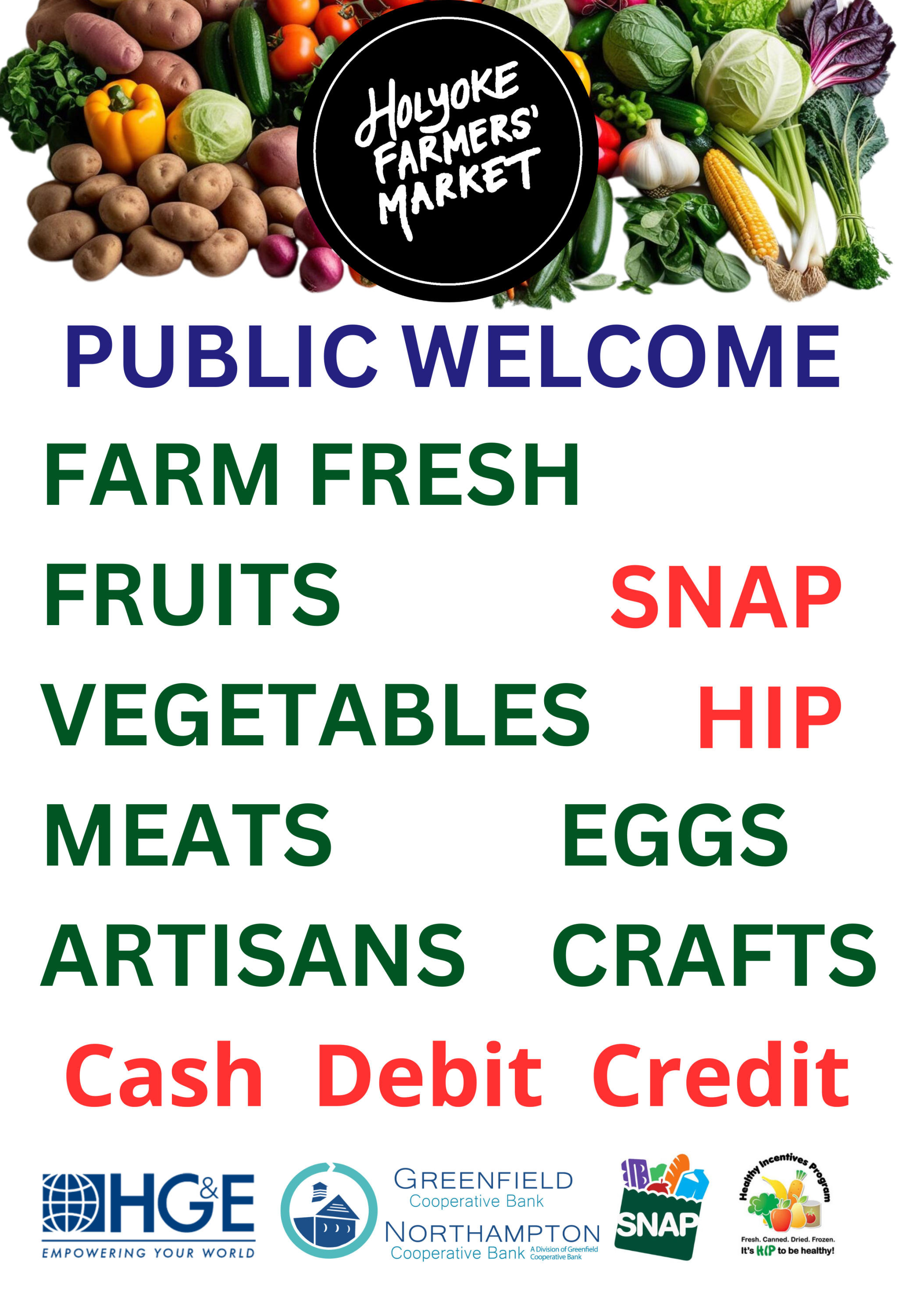 Founded in 1979, the Holyoke Farmers' Market in Holyoke, MA has been a wonderful way to meet our local farmers and get fresh flavorful produce for over 40 years! Vendors accept Cash Debit/Credit, EBT, SNAP/HIP - and WIC coupons.