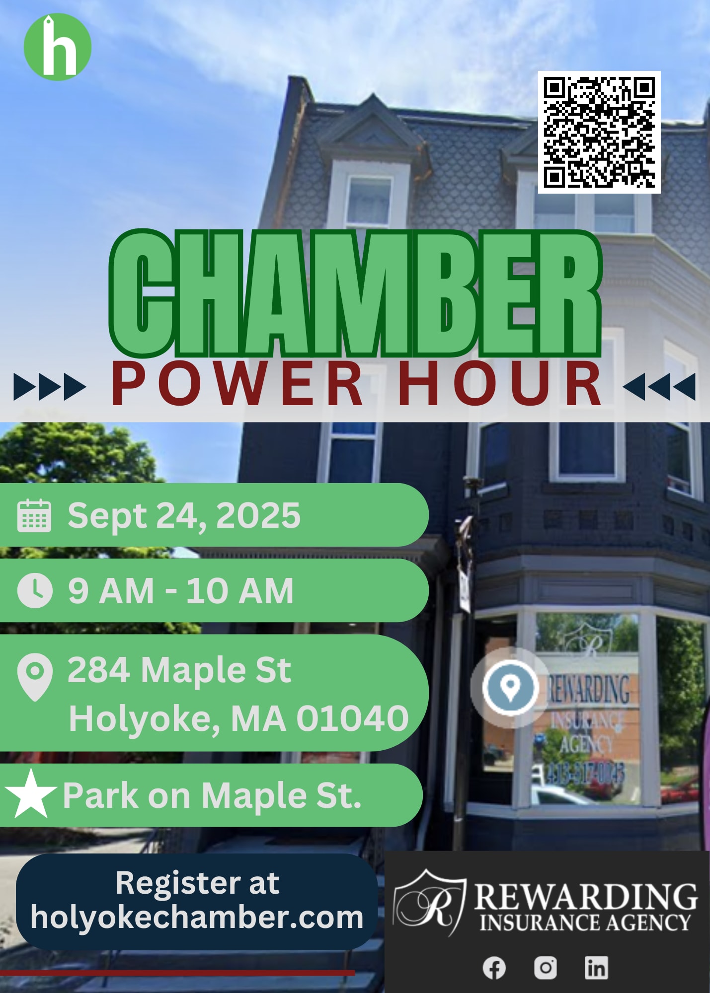 Start your day with connections that make a difference at the Greater Holyoke Chamber Power Hour. This dynamic morning networking session is tailored for local professionals and business owners looking to expand their network, share insights, and ignite new opportunities.